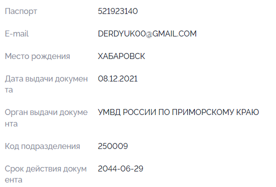 Мать – ДЕРДЮК ОЛЕСЯ АЛЕКСАНДРОВНА 22.05.1980