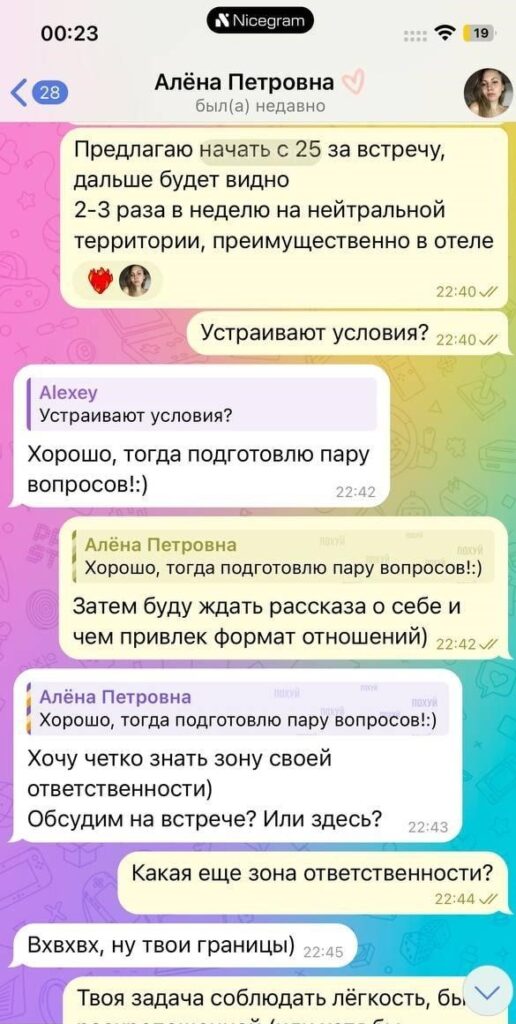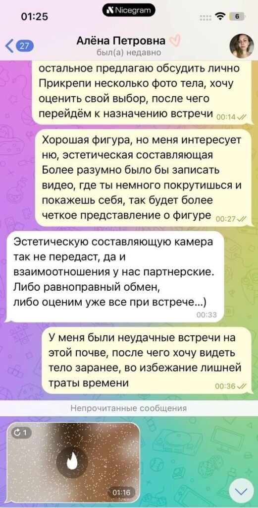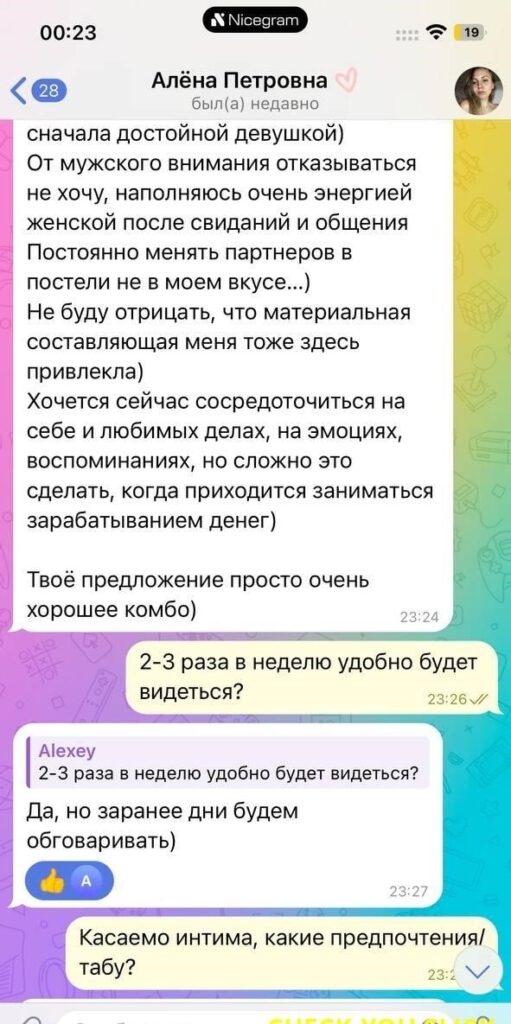 Была не против рассылки и публикации, так как считает что деньги важнее всего, а реклама ее секс-услуг принесет ей доп.заработок.