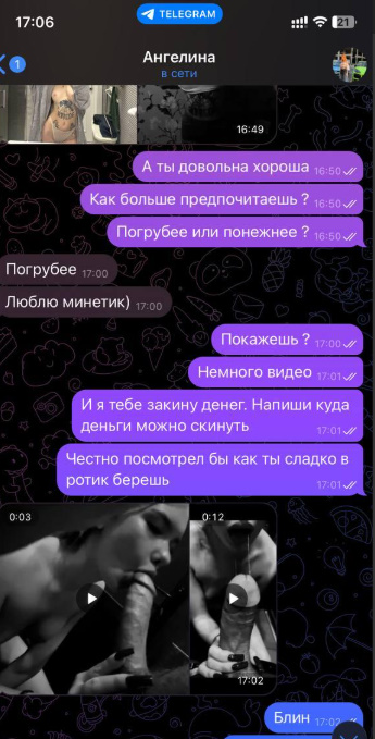 Была не против рассылки и публикации, хотя могла удалить за сумму, которую за неделю тратит, так как считает что деньги важнее всего, а реклама ее секс-услуг принесет ей доп.заработок.