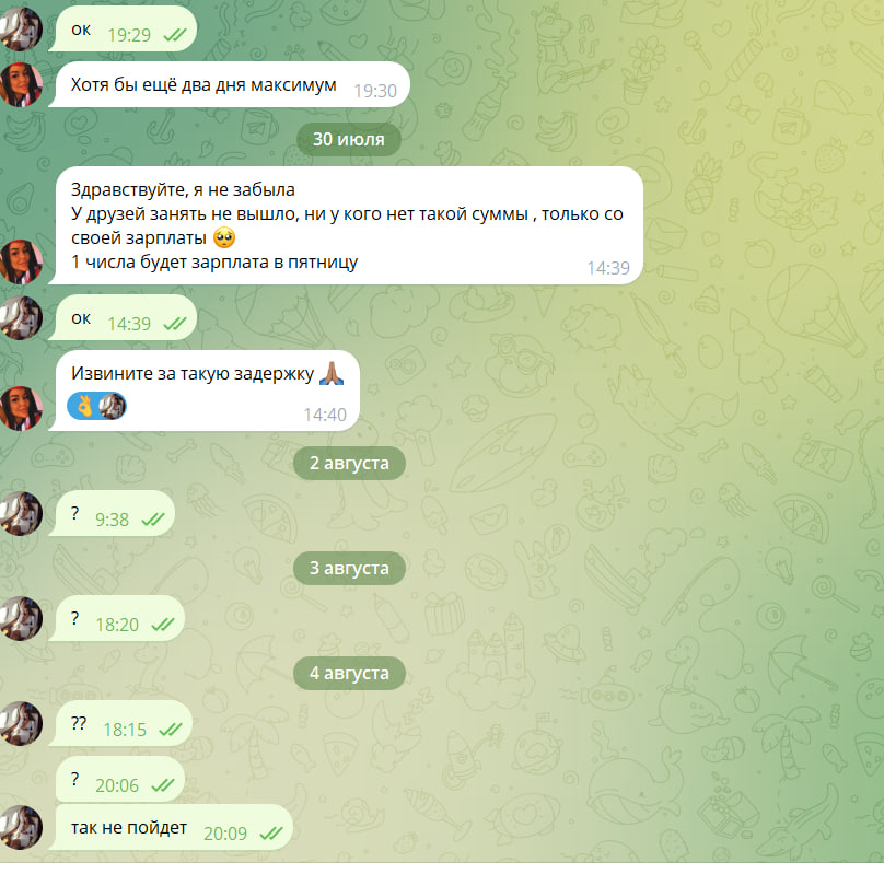 Сначала девушка обещала за предоплату приехать и обманула клиента, а потом обещала нам удалить и тоже обманула. Будьте с этой лгуньей осторожнее.