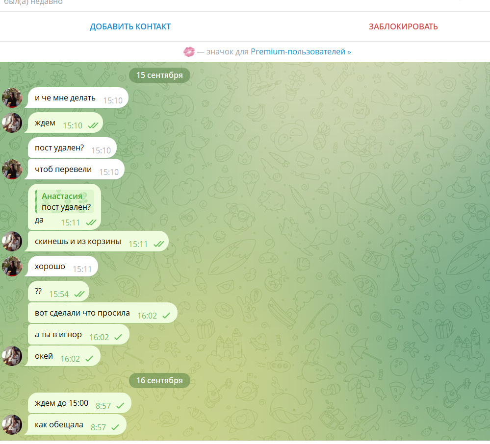 Пост мы убирали, так как она слезно обещала заплатить. Но потом начала угрожать.