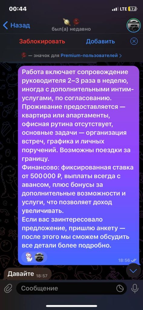 Ценник за ночь – по договоренности