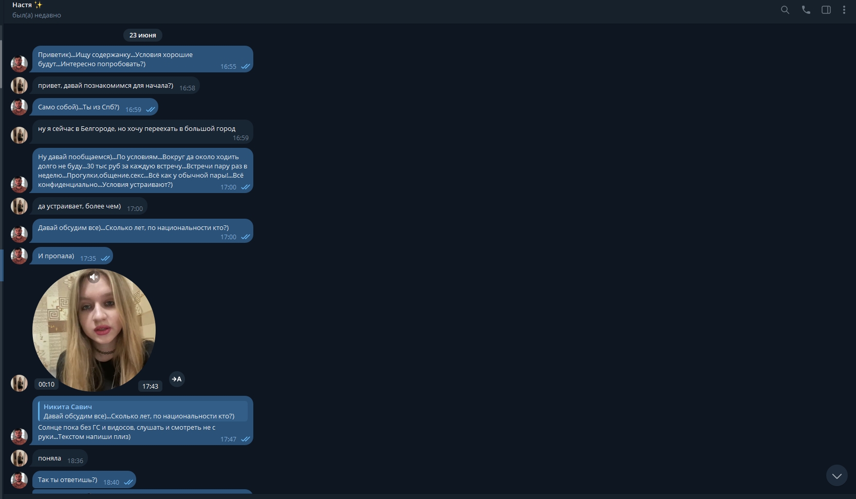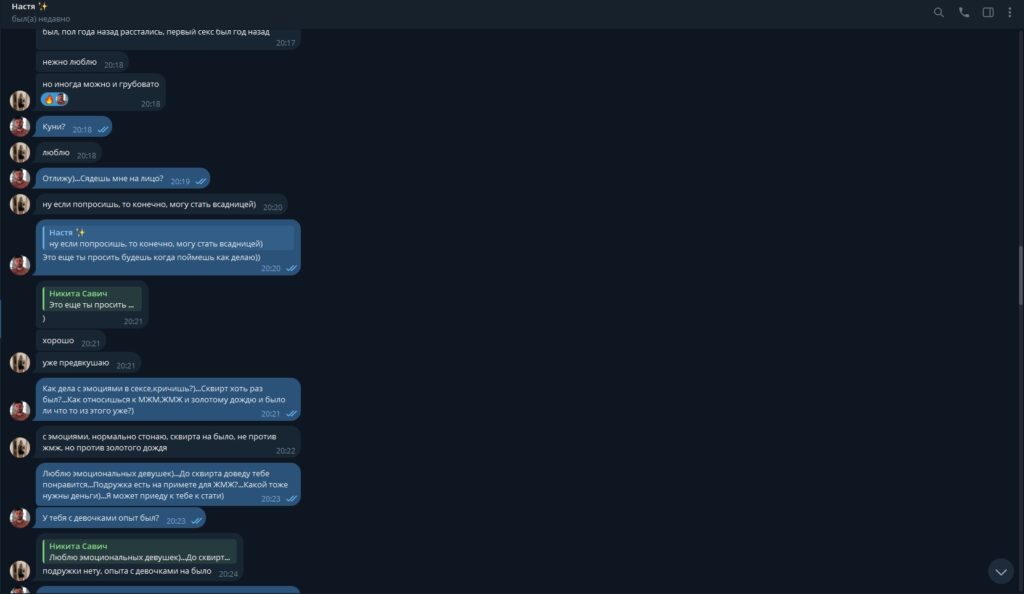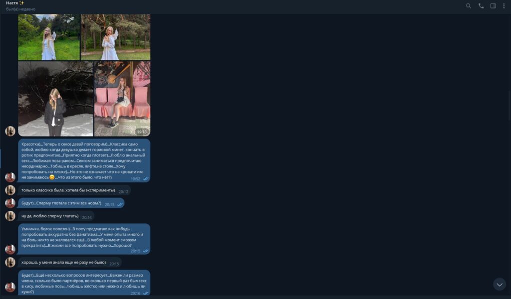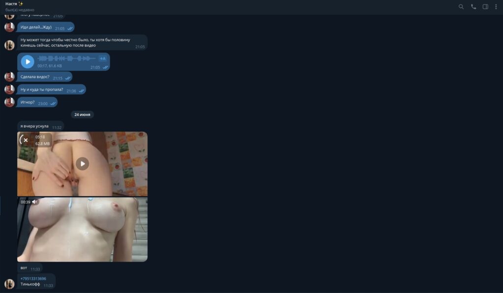 Настя из Курска, проститутка, сама выслала свои видео и фото, чтобы продаться за деньги. Любительница извращений, легко шла на любые условия и была готова на самые грязные игры ради клиентов.