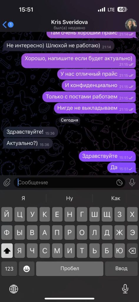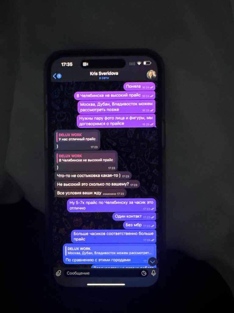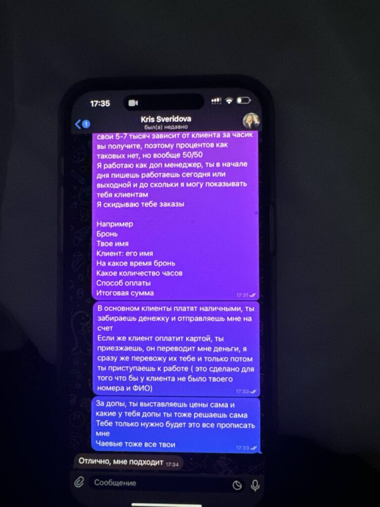 Она в погоне за красивой жизнью, сама из Челябинска, есть небогатый паренек, очень завистливая девица, постоянно меняет места работы. Наркоманит, в своем же городе со своим парнем обманывает цветочные магазины для контента. Как? Ее парень показывает фейковые скриншоте о переводе и забирает цветы из магазина. Так же пока они были в отношениях, ей писали с эскорт агентства, сначала прикинулась, что не занимается таким, потом через пару дней сама написала и ездила на заказы.